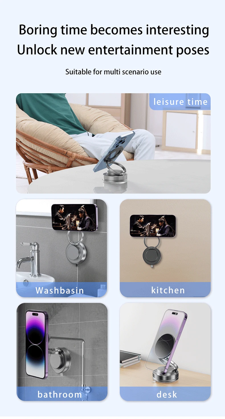 Car Phone Holder upgrade 360° Rotatable vacuum magnetic bracket Car Mount For iPhone Huawei Xiaomi Kitchen Phone Holder Black